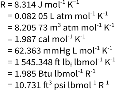Numerical Values of the Gas Constant R, in Various Units from wps.prenhall.com It's very simple, easy to use, and easy to understand. To account for deviation from the ideal situation an other factor. To find any of these values, simply enter the other ones into the ideal gas law calculator. But there is also a statistical element in the determination of the average kinetic energy of those molecules. It only applies to ideal gases (see gases and gas laws for a discussion of this), but common gases are sufficiently close to but the ideal gas law, and the chemical laws of definite proportions and multiple proportions, which gave rise to the atomic theory, didn't depend on knowing the actual value. The units of the universal gas constant r is derived from equation pv = nrt. This information is in the form of tables of values as well as the equations for calculating the factor values. It is the molar equivalent to the boltzmann constant, expressed in units of energy per temperature increment per mole, i.e.